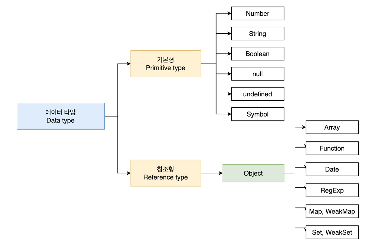 기본형과 참조형은 값의 저장 방식 (주소값을 바로 복제 / 주소값들로 이루어진 묶음을 가리키는 주소값을 복제,