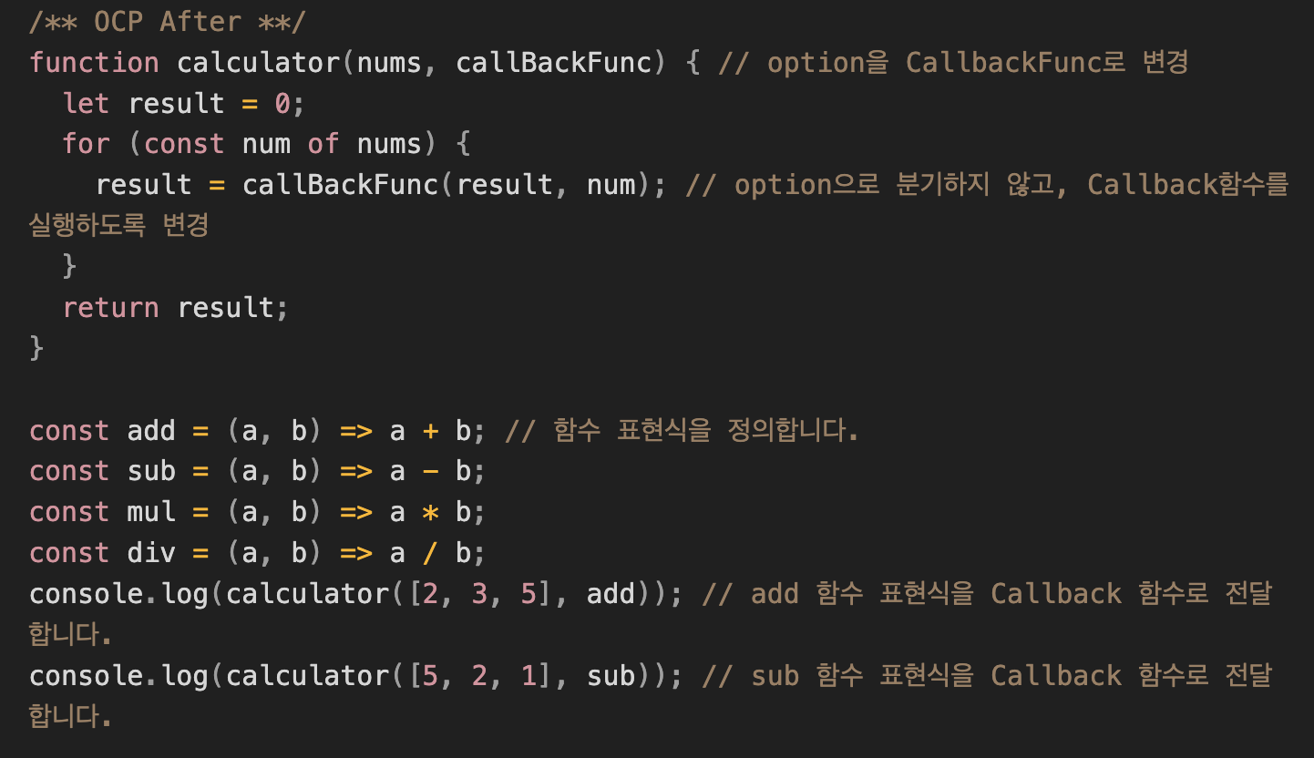 : 기존 코드에 영향없이 소프트웨어에 새로운 기능이나 구성 요소를 추가할 수 있어야 한다.