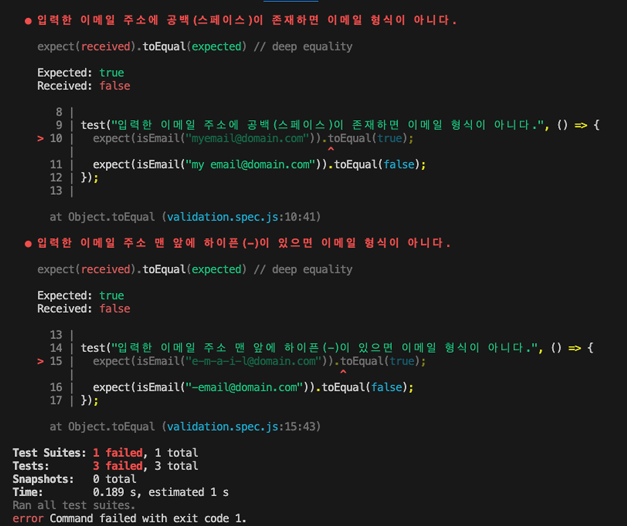 expect (isEmail('이메일이 아니에요')).toEqual(false);