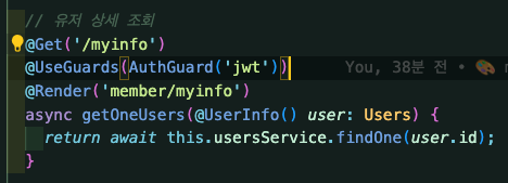 param 안에다 :id로 내 정보를 받아왔었는데, handelbars 로 렌더링 시에 userid 를 못받고 그냥 전체 유저 정보가 나오는 현상이 발생했다. param 으로 :id 를 받지 않고 jwt 로직을 거쳐서 내 정보가 나오게 수정하여 이 문제를 해결하였다.